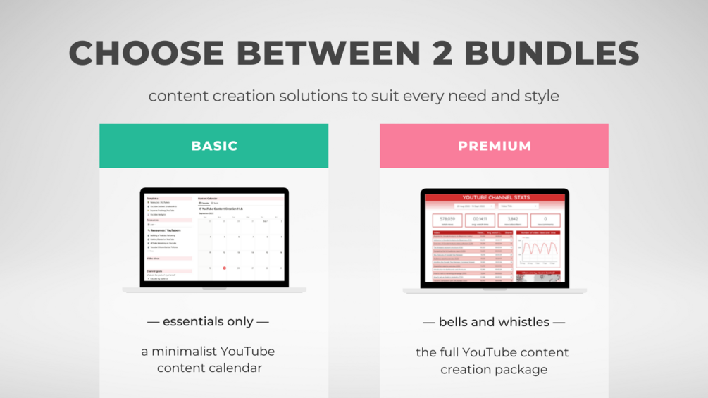 A bundle of Notion templates for planning your YouTube content, tracking expenses, and more