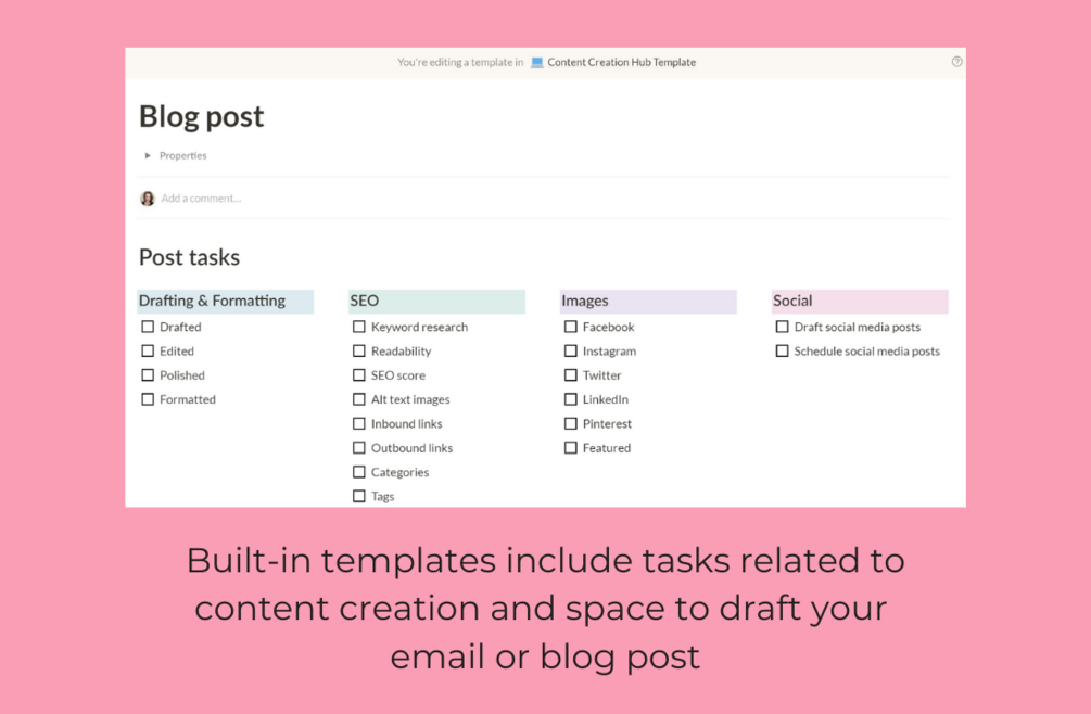 The Email Hub also comes with a FREE digital library template complete with 35+ resources on managing your blog and brand. This Content Repository includes resources on creating readable newsletters, designing an email template, and more.
