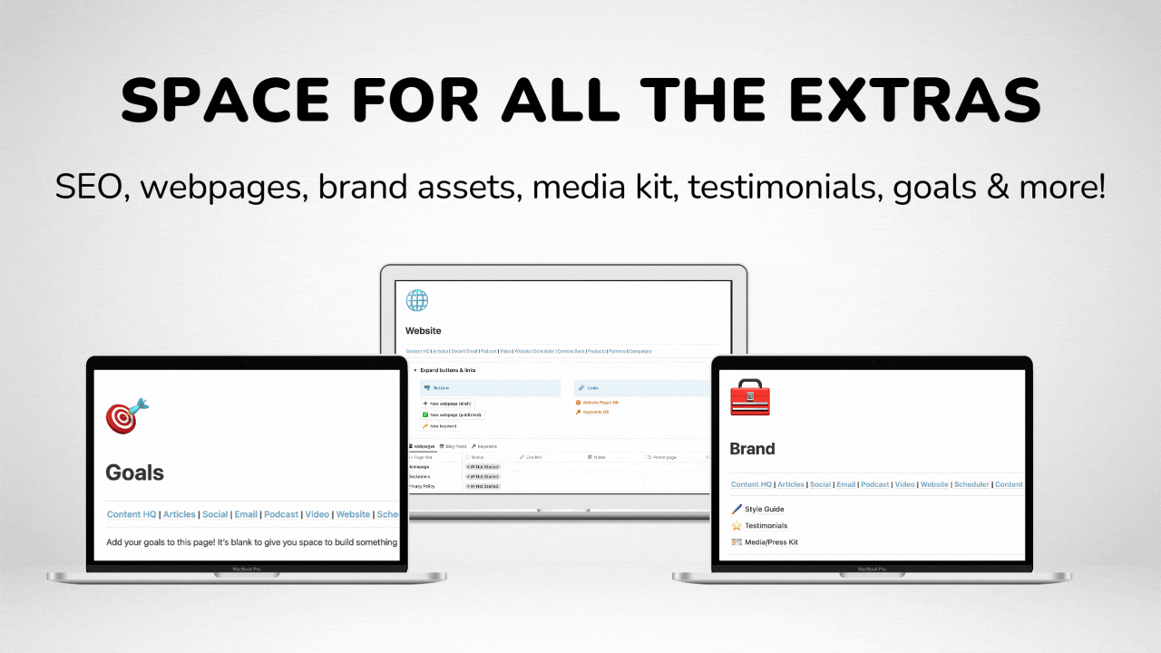 🗓️ Content calendar — Create, plan, and manage all your content from one powerful database. Includes 25+ templates, dedicated dashboards, and quick-capture buttons for: